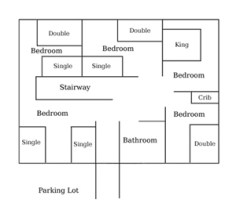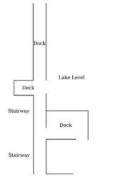 Note: The diagrams below show overhead views of the three levels of the cottage and its grounds starting with the entrance on the upper-level then going down. Clicking on a diagram will lead you to images of that area.